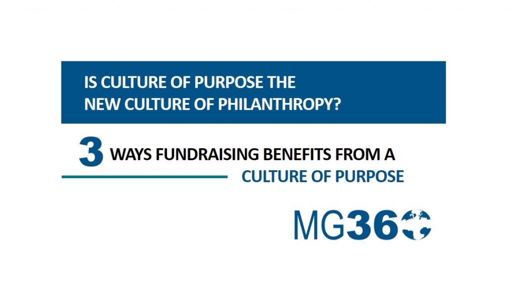 MG360: THREE WAYS FUNDRAISING BENEFITS FROM A CULTURE OF PURPOSE